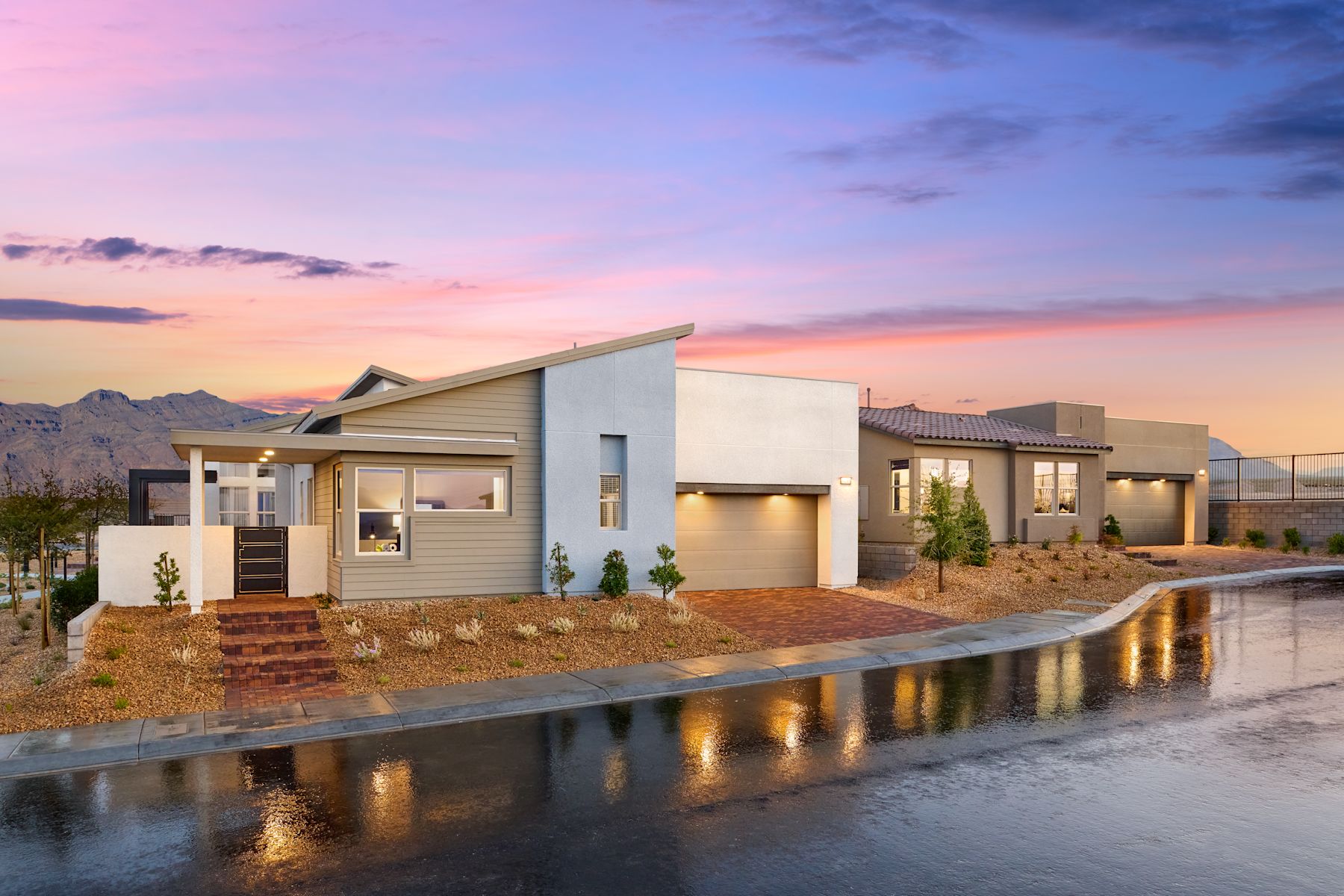 Peaked rooflines and natural textures shape modern elegance, delivering comfort and style for inspired everyday living.